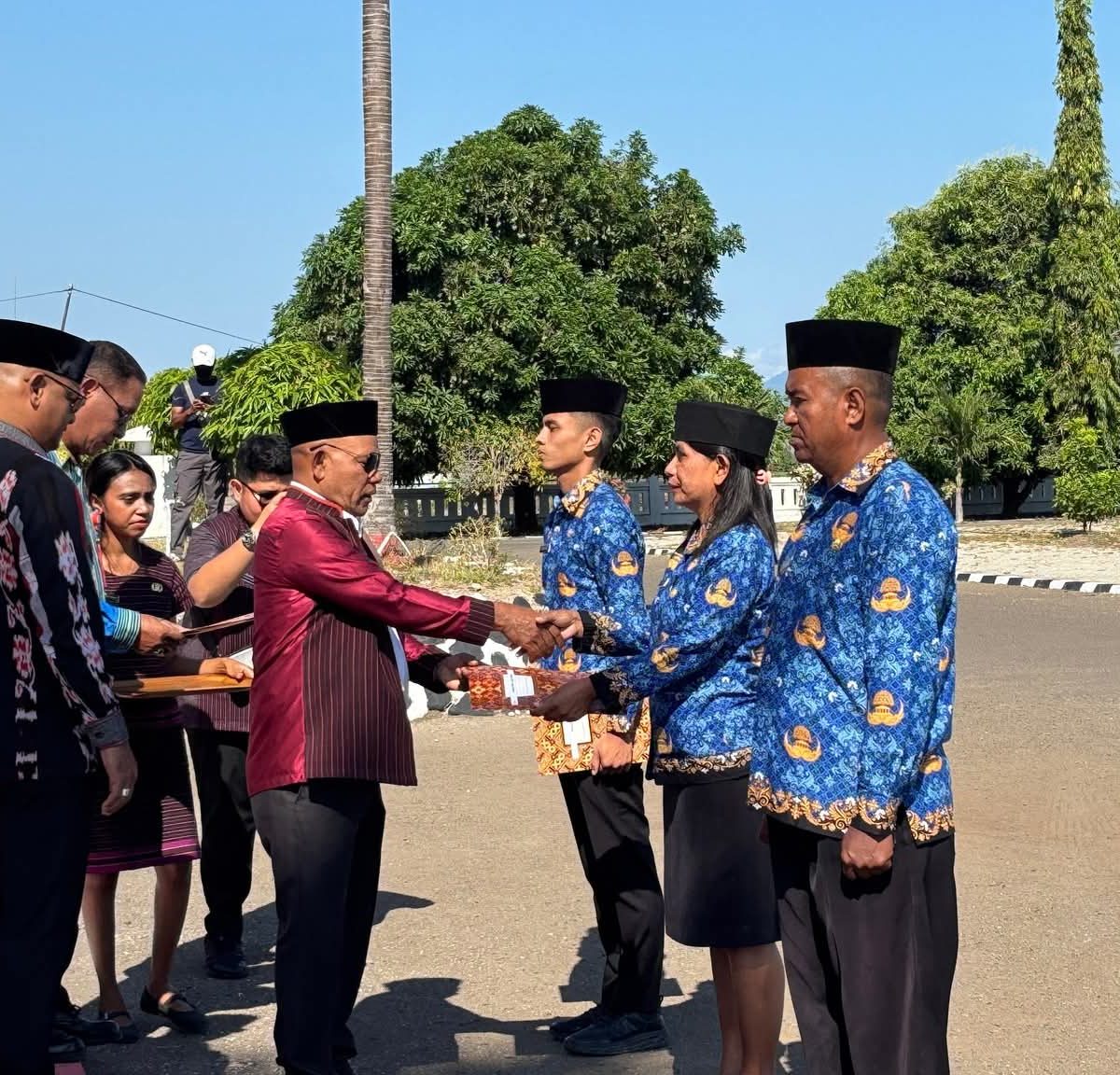KORANINFOKINI.COM, LEMBATA — Bupati Lembata, P. Kanisius Tuaq, SP, menyerahkan SK kepada 1 CPNS IPDN formasi 2025 dan 405 PPPK Tahap II formasi 2024 dengan masa kerja hingga 2030. Acara berlangsung di halaman Kantor Bupati, disaksikan oleh Sekda, Paskalis Ola Tapo Bali, A.P., M.T, Kepala BKPSDM, Said Kopong, S.Sos., M.Si, dan para pimpinan OPD Kabupaten Lembata.