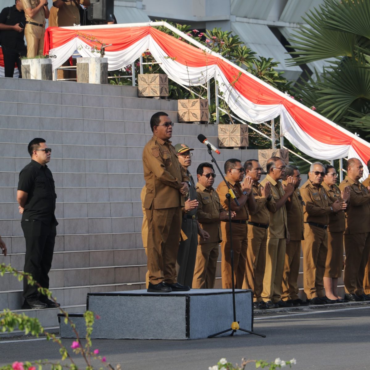 Gubernur Nusa Tenggara Timur, Emanuel Melkiades Laka Lena memimpin apel bersama ASN lingkup Pemerintah Provinsi NTT, pada Senin (25/8) pagi bertempat di halaman depan Gedung Sasando Kantor Gubernur NTT.