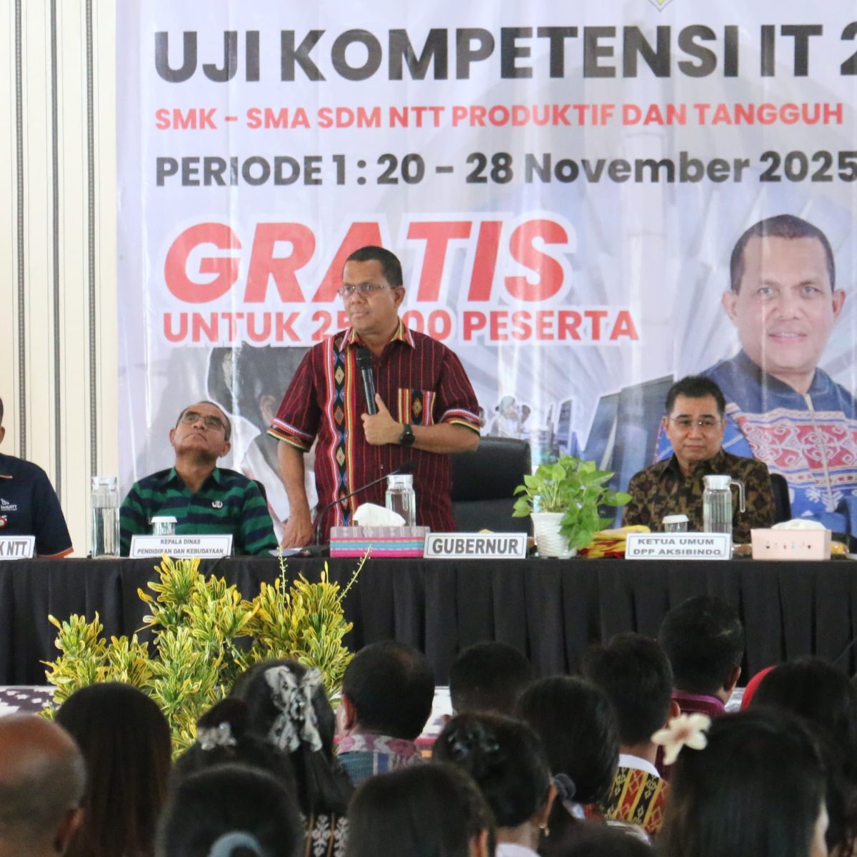 KORANINFOKINI.COM, KUPANG – Gubernur Nusa Tenggara Timur, Emanuel Melkiades Laka Lena, membuka secara resmi Kegiatan Uji Kompetensi IT Gratis bagi Peserta Didik SMA dan SMK se-Kota Kupang, Kamis (20/11/2025) di Aula SMKN 1 Kupang.