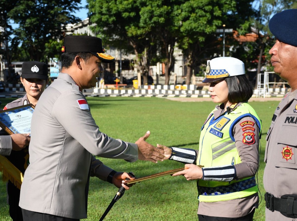 Empat orang personel perwakilan menerima penghargaan atas dedikasi dan kinerja luar biasa dalam menjalankan tugas kepolisian, khususnya dalam memberikan pelayanan terbaik kepada masyarakat.