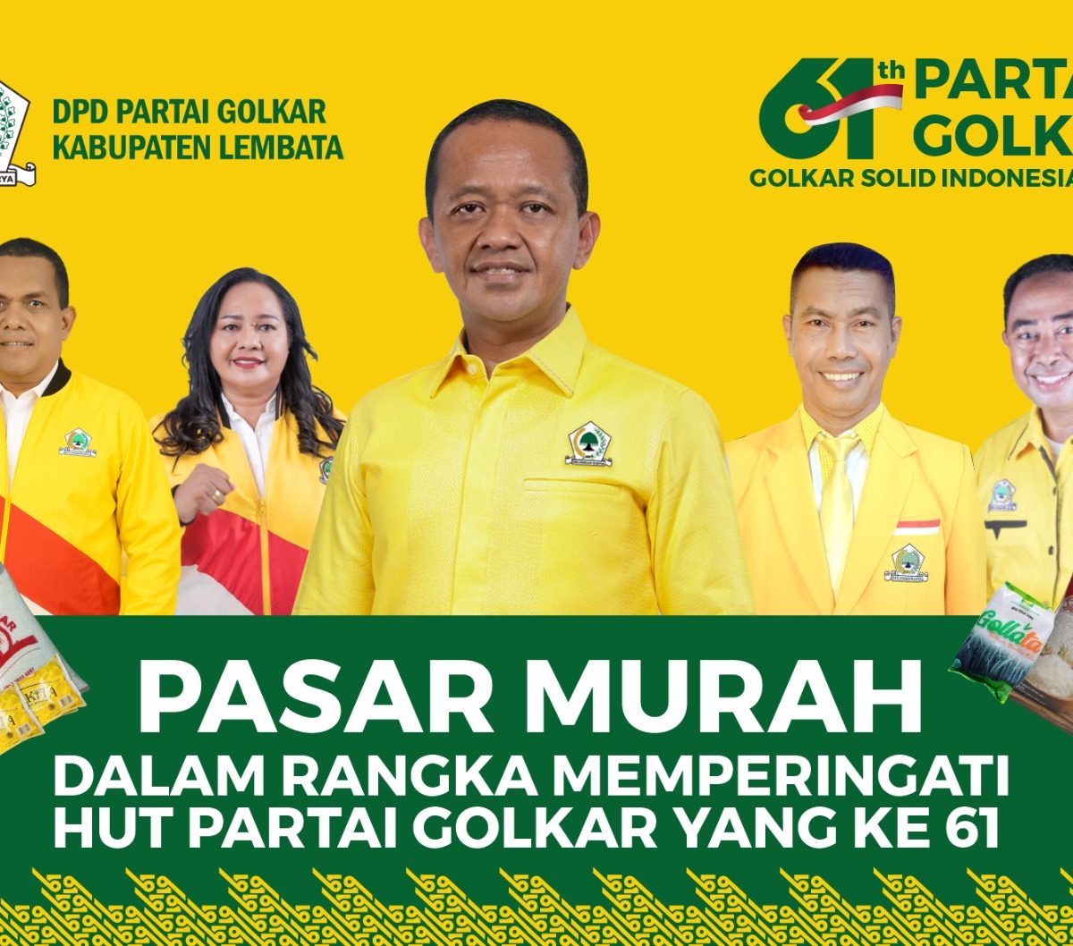KORANINFOKINI.COM, LEMBATA – Dalam rangka merayakan hari ulang tahun partai Golkar yang ke-61, DPD II Golkar Lembata NTT akan mengadakan pasar murah.