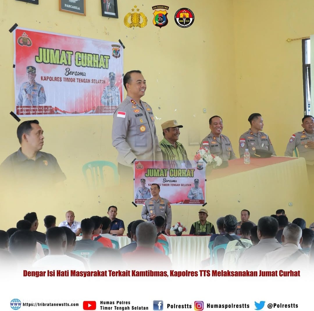 Kapolres TTS, AKBP Hendra Dorizen, SH, S.Ik, MH mengatakan, jumat curhat yang dilaksanakan ini sebagai wadah silahturahmi antara polri dan masyarakat.