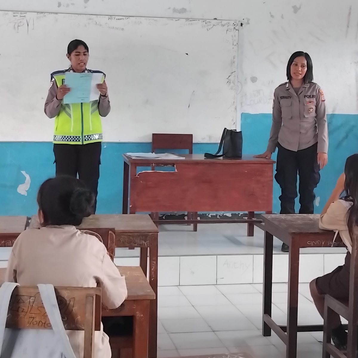 KORANINFOKINI.COM, LEMBATA – Polwan polres Lembata polda NTT Jumat 13 Februari 2026 menjadi guru atau pengajar di SMAN 1 Nubatukan Lembata.