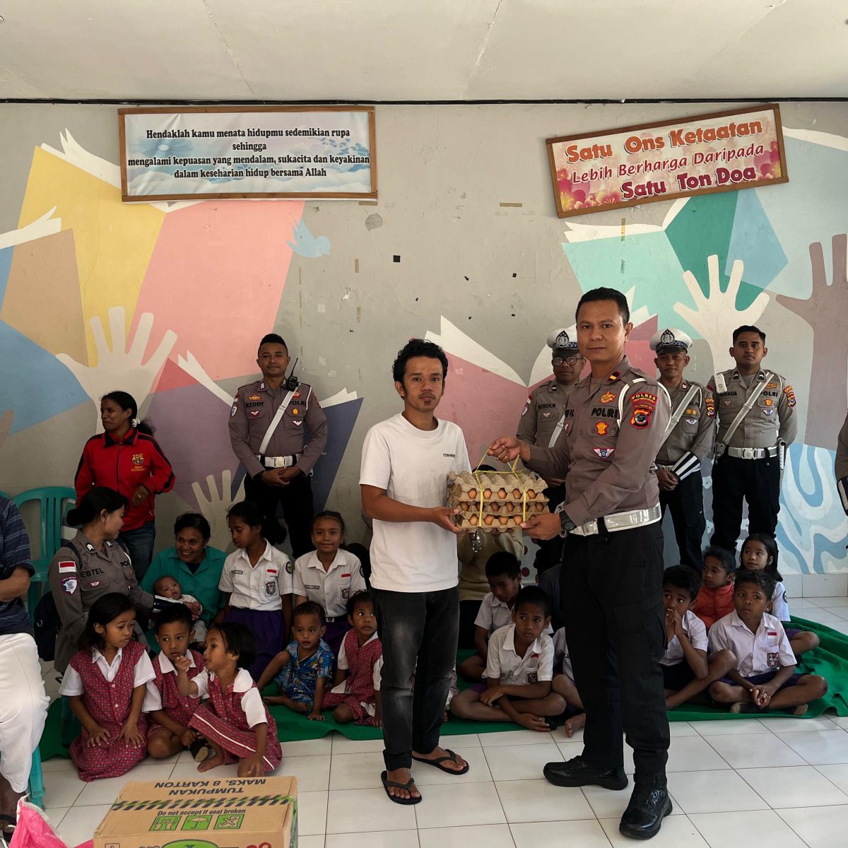KORANINFOKINI.COM, SoE – Dalam rangka menyambut hari ulang tahun satuan lalu lintas Bhayangkara ke 70 yang jatuh pada tanggal 19 september, sat lantas polres TTS melaksanakan bakti sosial.