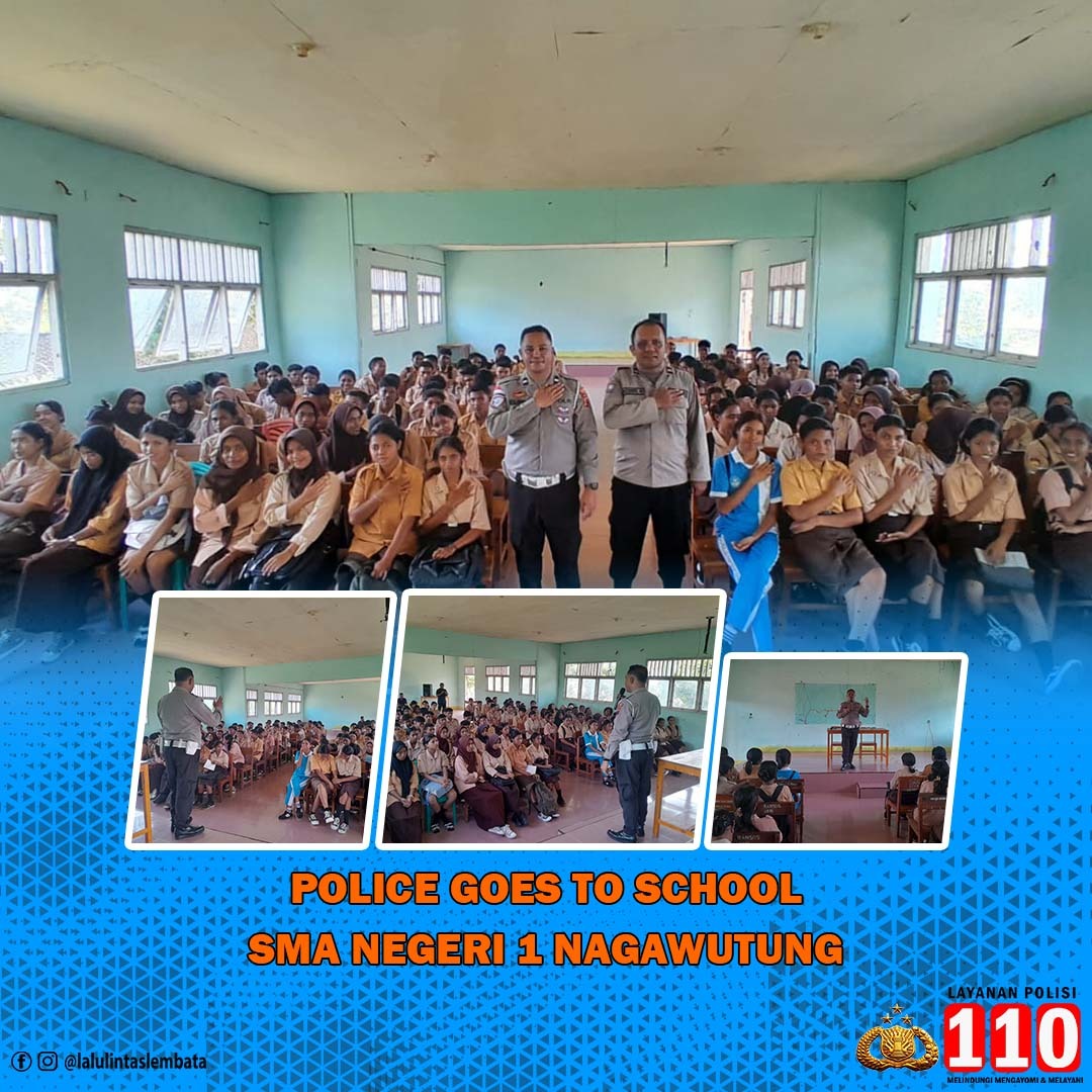 KORANINFOKINI.COM, LEMBATA – Dalam rangka meningkatkan kesadaran dan disiplin berlalu lintas di kalangan pelajar, Satuan Lalu Lintas Polres Lembata melaksanakan kegiatan Police Goes To School di SMA Negeri 1 Nagawutung, Jumat (24/04/2026).